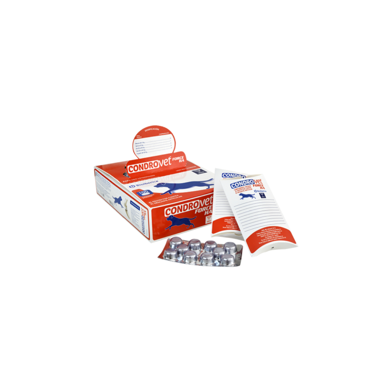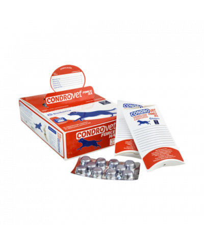 Vencimiento 9/25Recomendado para proteger las articulaciones, ayudando a frenar su desgaste, en perros con sobrepeso, edad avanzada, elevado nivel de ejercicio y en cachorros de razas grandes durante el período de crecimiento.COMPOSICIÓN:Condroitín Sulfato 100% de pureza y Glucosamina Clorhidrato > 99% de pureza, componentes fundamentales de la matriz extracelular del cartílago articular, que ayudan a mantener la funcionalidad y movilidad de las articulaciones. Además, incorpora Ácido Hialurónico que contribuye al correcto mantenimiento del líquido sinovial, esencial para recuperar la movilidad articular.https://vetanco.com/es/producto/condrovet-force-ha/