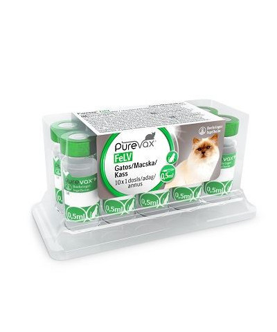 Inmunización activa de los gatos de 8 semanas de edad y mayores contra la leucemia felina (ViLeF o en inglés FeLV). Para la prevención de la viremia persistente y las manifestaciones clínicas de la enfermedad.Composición:Virus canarypox recombinante FeLV (vCP97) > 107.2 DICC50 (dosis infecciosa cultivo celular 50 %).https://www.boehringer-ingelheim.com/sa/salud-animal/productos/purevax-fel-v